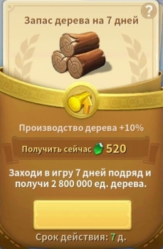 - Infinity Kingdom : Запас дерева на 7 дней